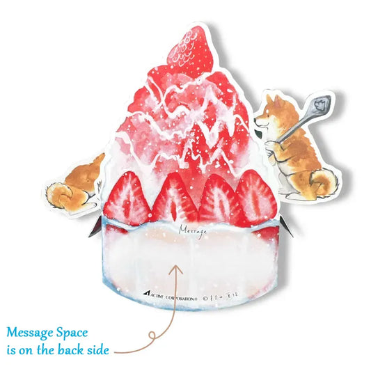 3D Greeting Card: 村田 夏佳 (Natsuka Murata): Shiba-Inu with Strawberry Kakigori (Shaved Ice)