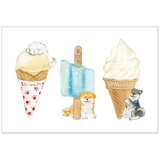 Postcard: 村田 夏佳 (Natsuka Murata): Shiba-Inu with Ice Cream & Popsicle