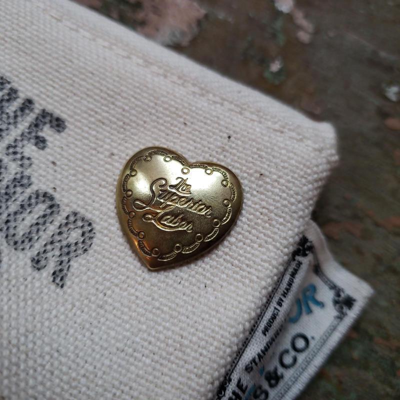 This beautiful heart shaped pin by The Superior Labor can be used on fabric to decorate adding a personal touch to your pen cases, bags, backpacks, caps, scarfs, jackets... Comes packaged on a leather sheet with The Superior Labor embossed logo.