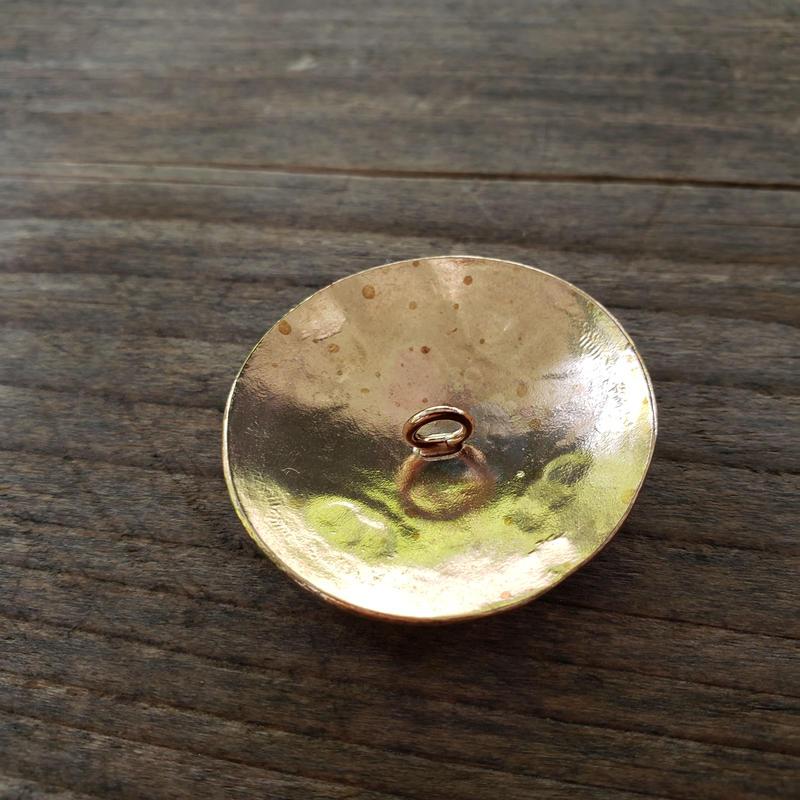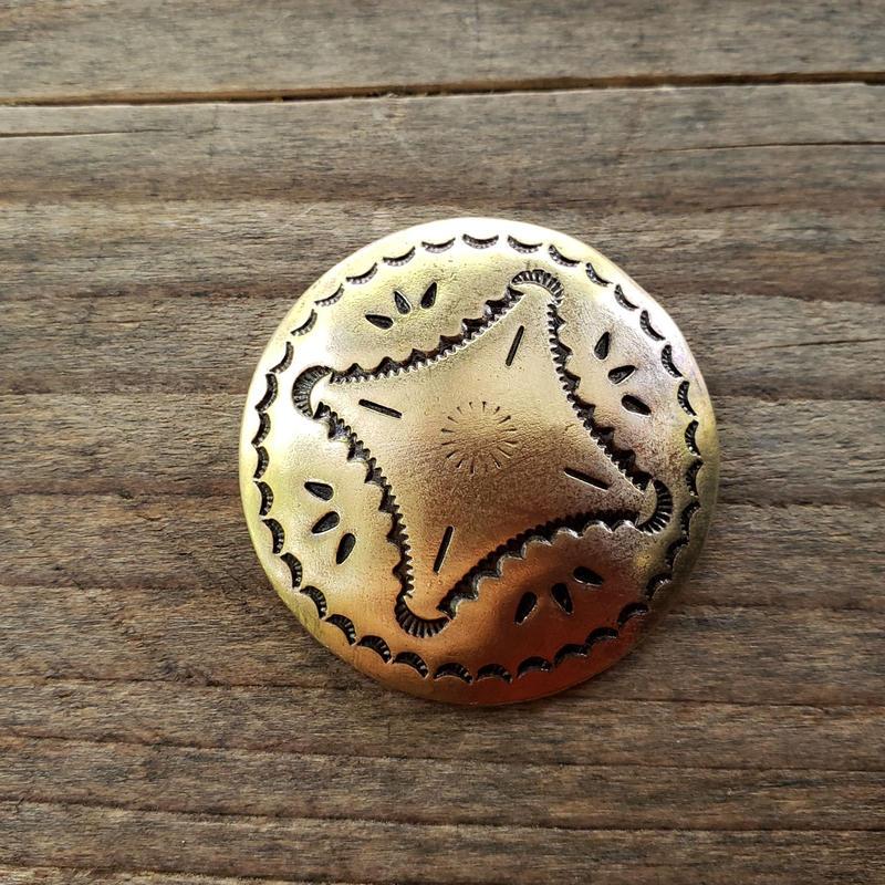 This beautiful concho by The Superior Labor have the back as a button, so you can hold it on a string or a elastic.