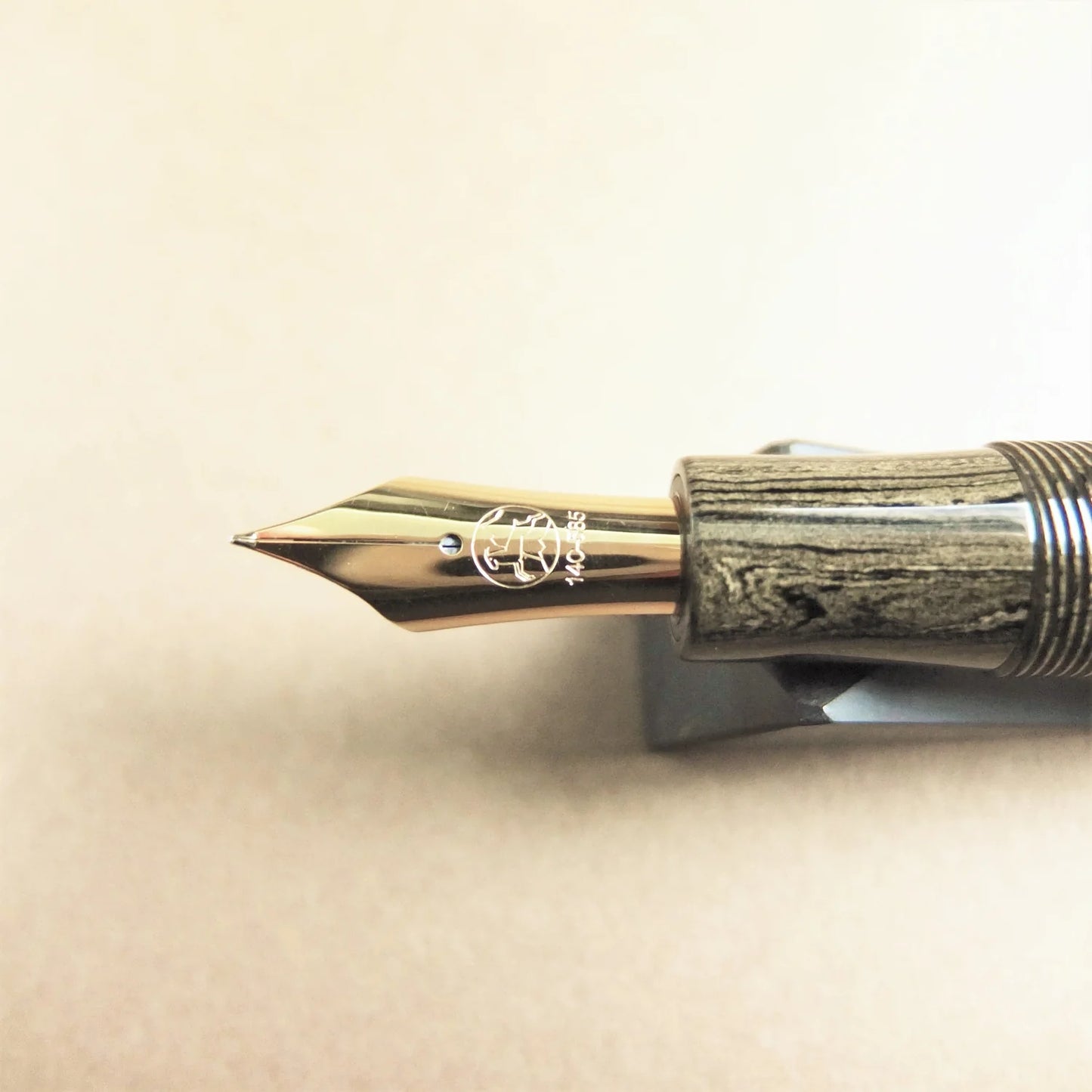 The 14k gold nibs are hand grinded by nib master CY, from Tokyo Station Pens and Kyuseido. Please, understand that the hand grinding will take some time, so the orders will be shipped in about 10 - 12 days.