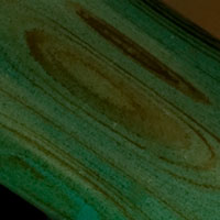 The blue-green color name is 風 "kaze", that means "wind", a calm bluish-green marbled with a black base.