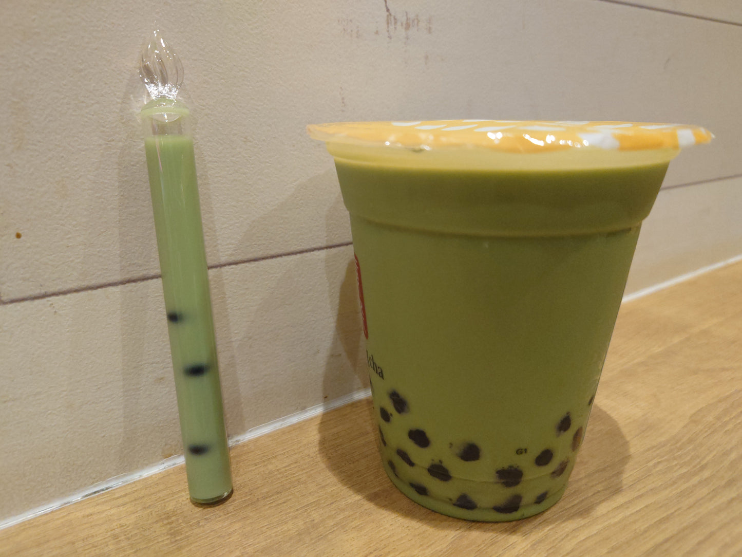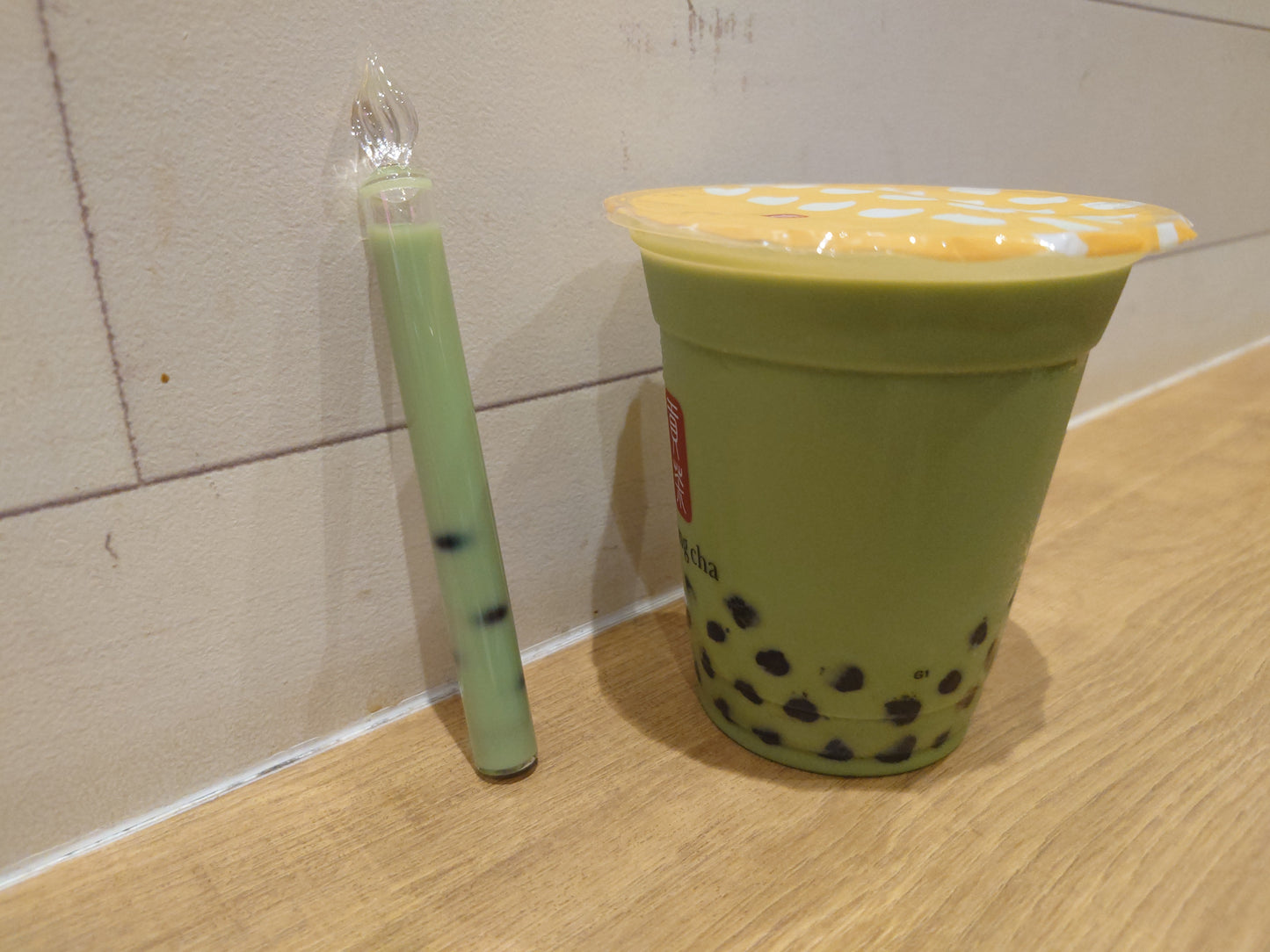 This design is a limited edition of our best seller “Bubble tea” in matcha color. The pen has the shape of a straw and holds a liquid imitating matcha milk tea and glass balls imitating the tapioca pearls. Enjoy the delicious look of your favourite drink together with the relaxing and pleasant sound of the glass tapioca pearls when they chime between them. Shake the pen to enjoy watching the pearls move and spin while their sound enchants you with its shoothing tone.