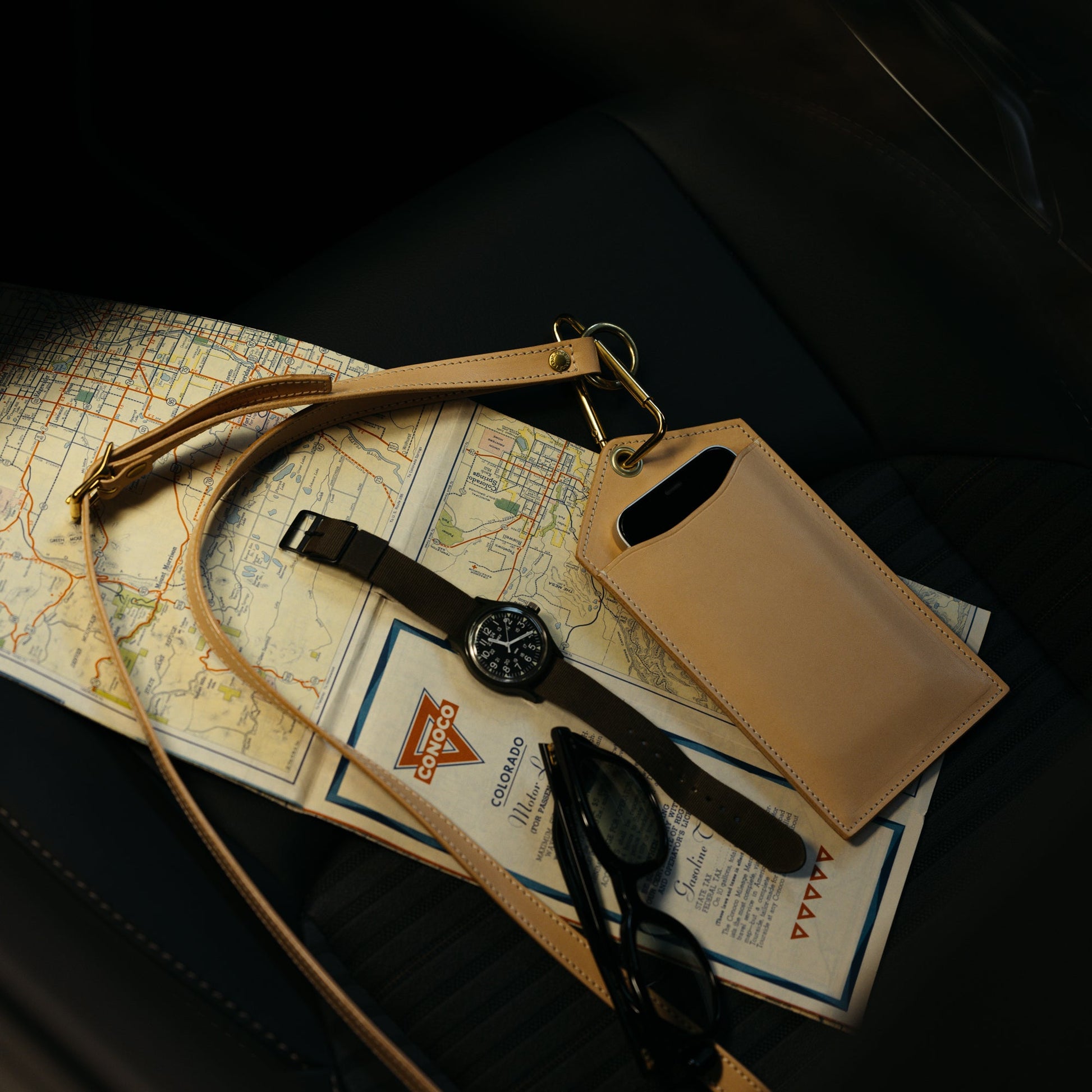An elegant mobile holder handmade by The Superior Labor. It can be hold by the "Hang Together System" strap in an easy and secure way.