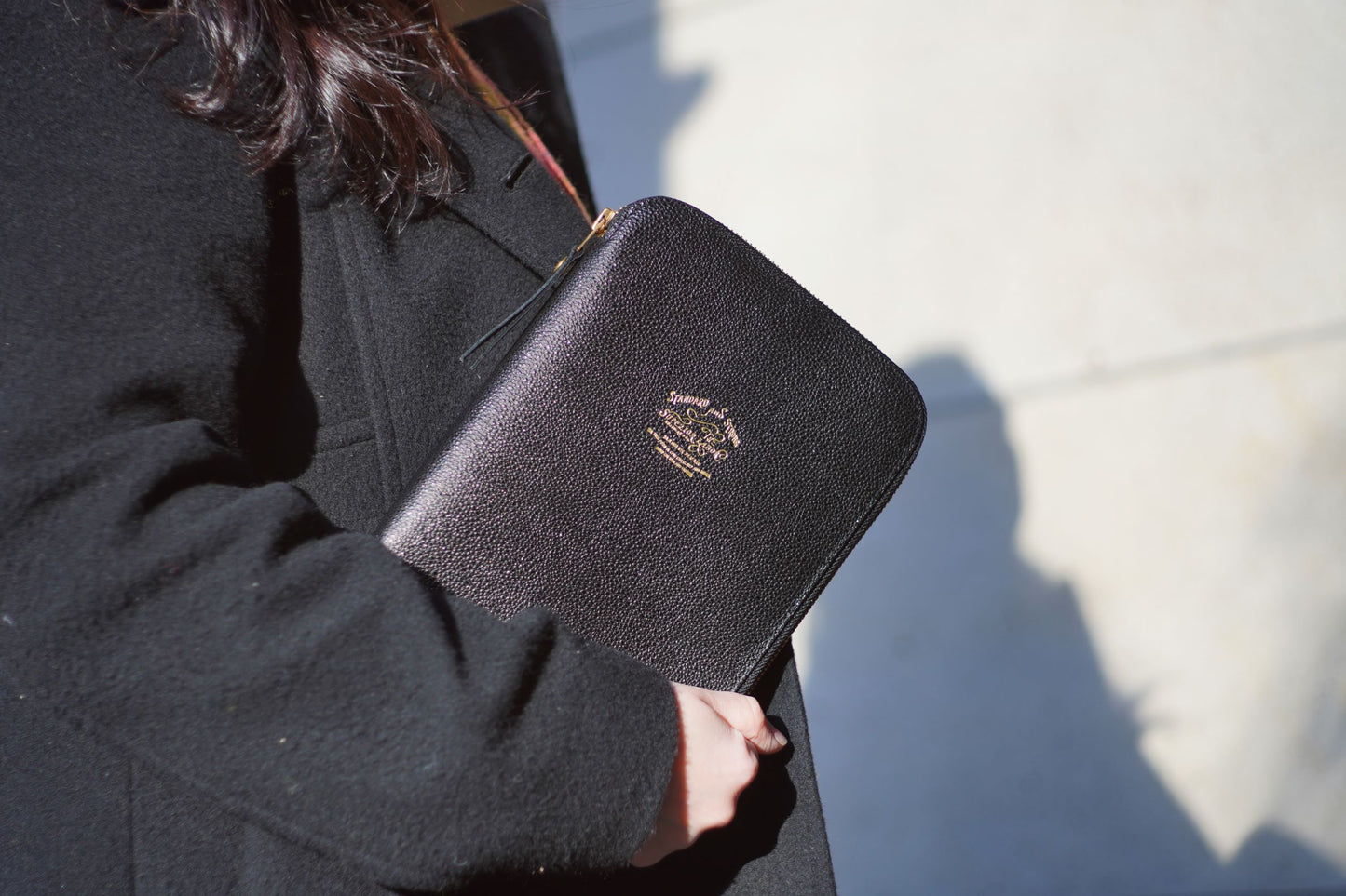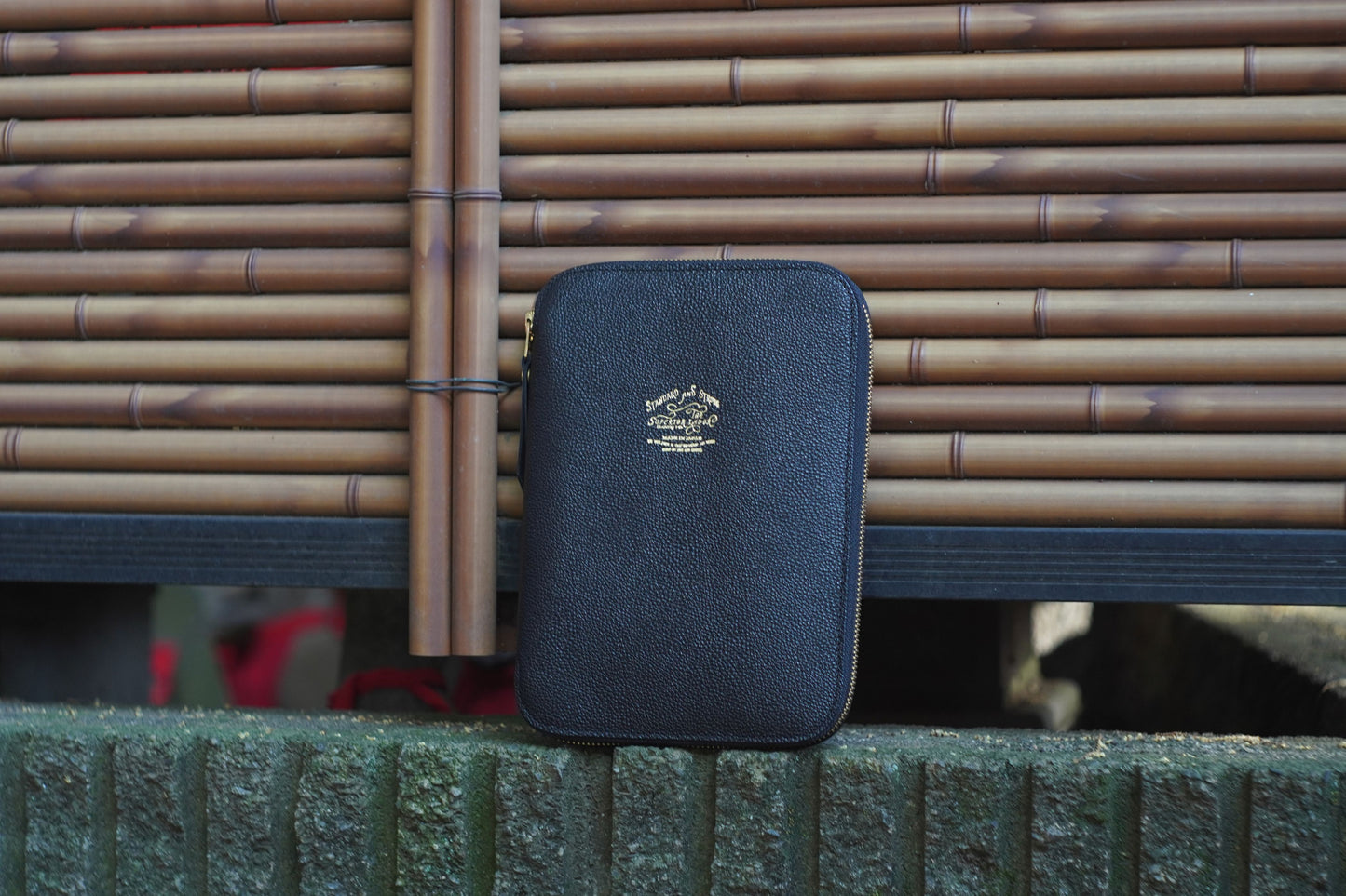 A luxurious handmade zip organizer by The Superior Labor. The exterior and the interior are made of leather with an exquisite finish. It can hold an A5 planner or a thick A5 notebook, like, for example, MD Notebook. It has multiple pockets including one with a zipper that can be used as a wallet or as a pen case.