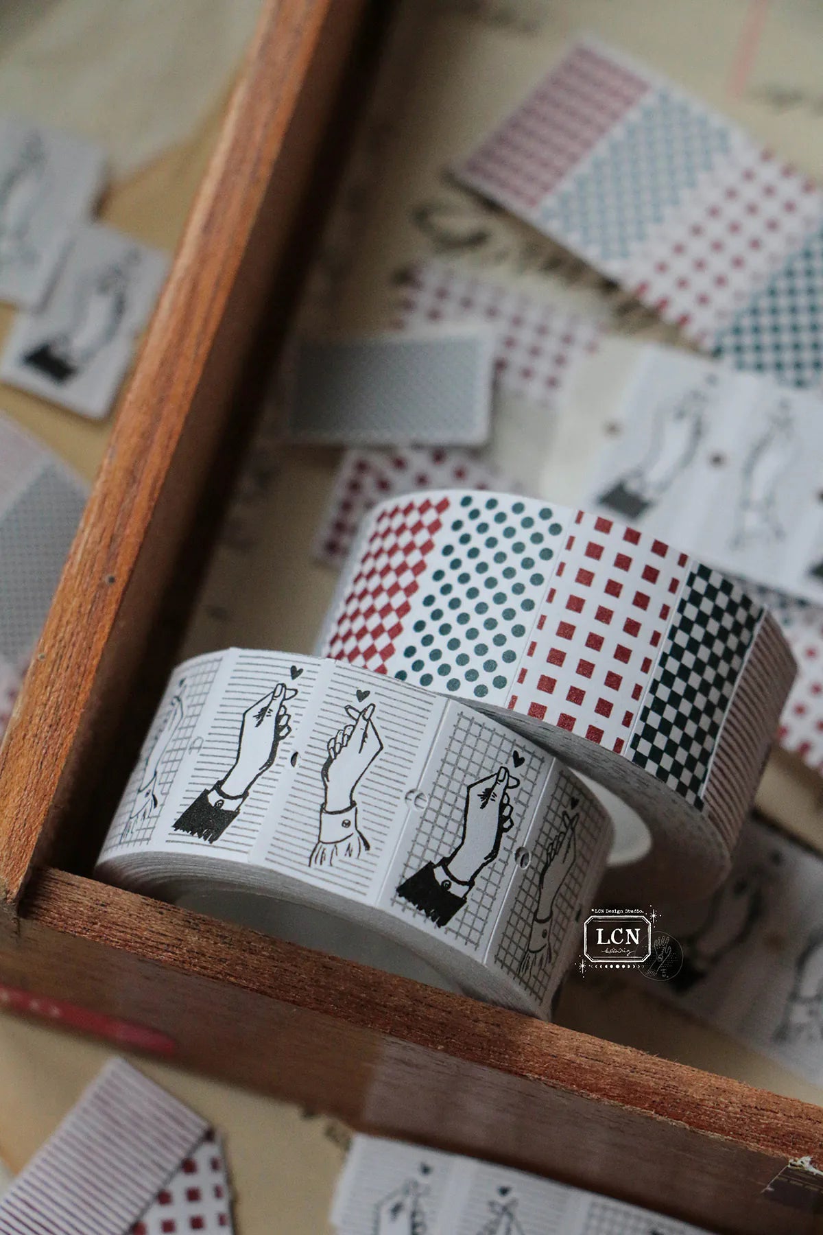 Designed by Lin Chia Ning, this charming sticker roll transforms classic price labels into heartfelt stationery accents. Featuring delicate hand-drawn finger heart gestures with a soft grid background, these stickers bring a warm, expressive touch to journaling, scrapbooking, and creative projects. Whether used as decorative elements or handy tab stickers, they add a sweet, personal feel—one roll to complement any theme!