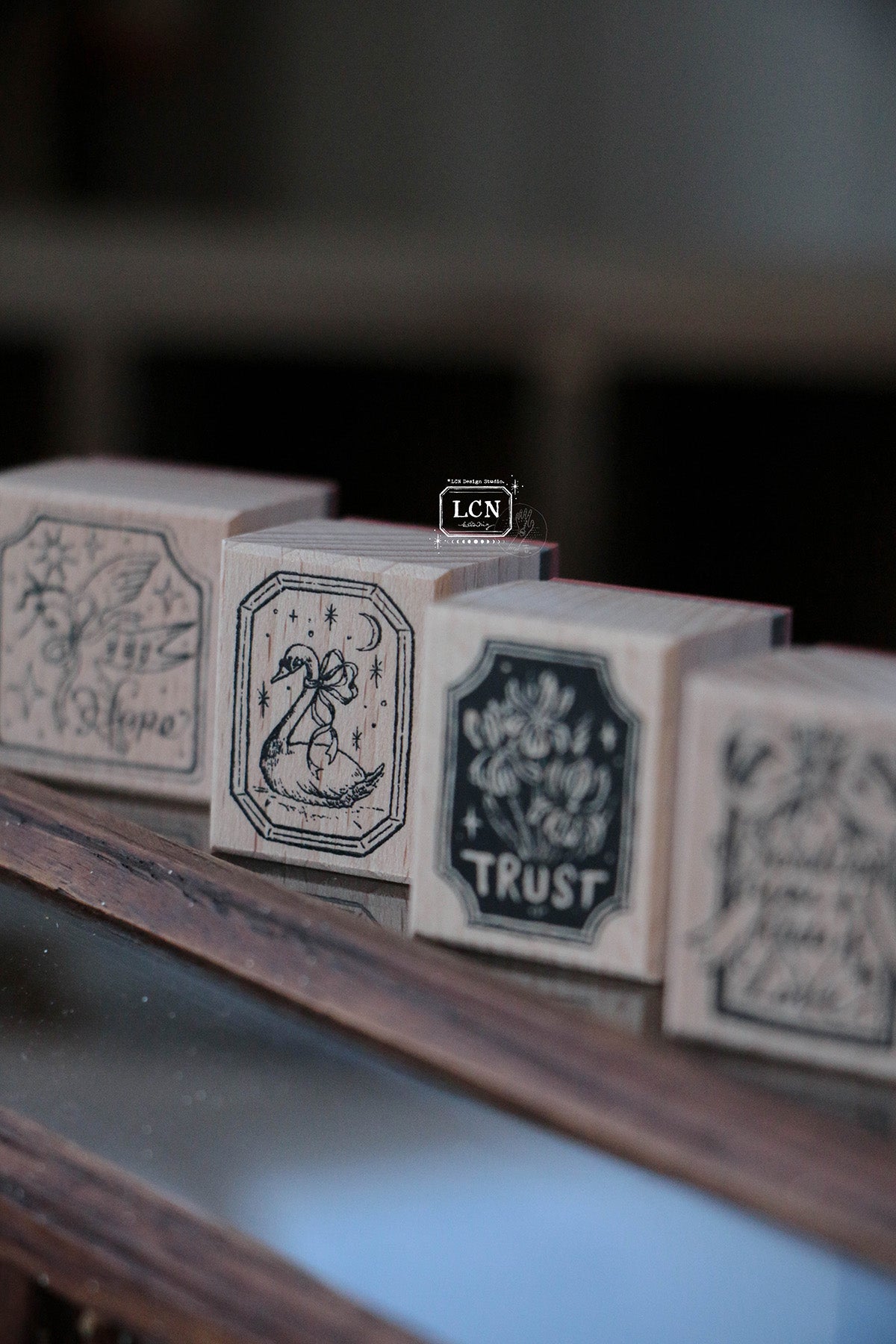 Designed by Lin Chia Ning, this exquisite rubber stamp features a graceful swan adorned with a delicate ribbon, surrounded by twinkling stars and a crescent moon. A symbol of elegance and quiet strength, this stamp is perfect for adding a nostalgic and poetic touch to journals, envelopes, and creative projects.