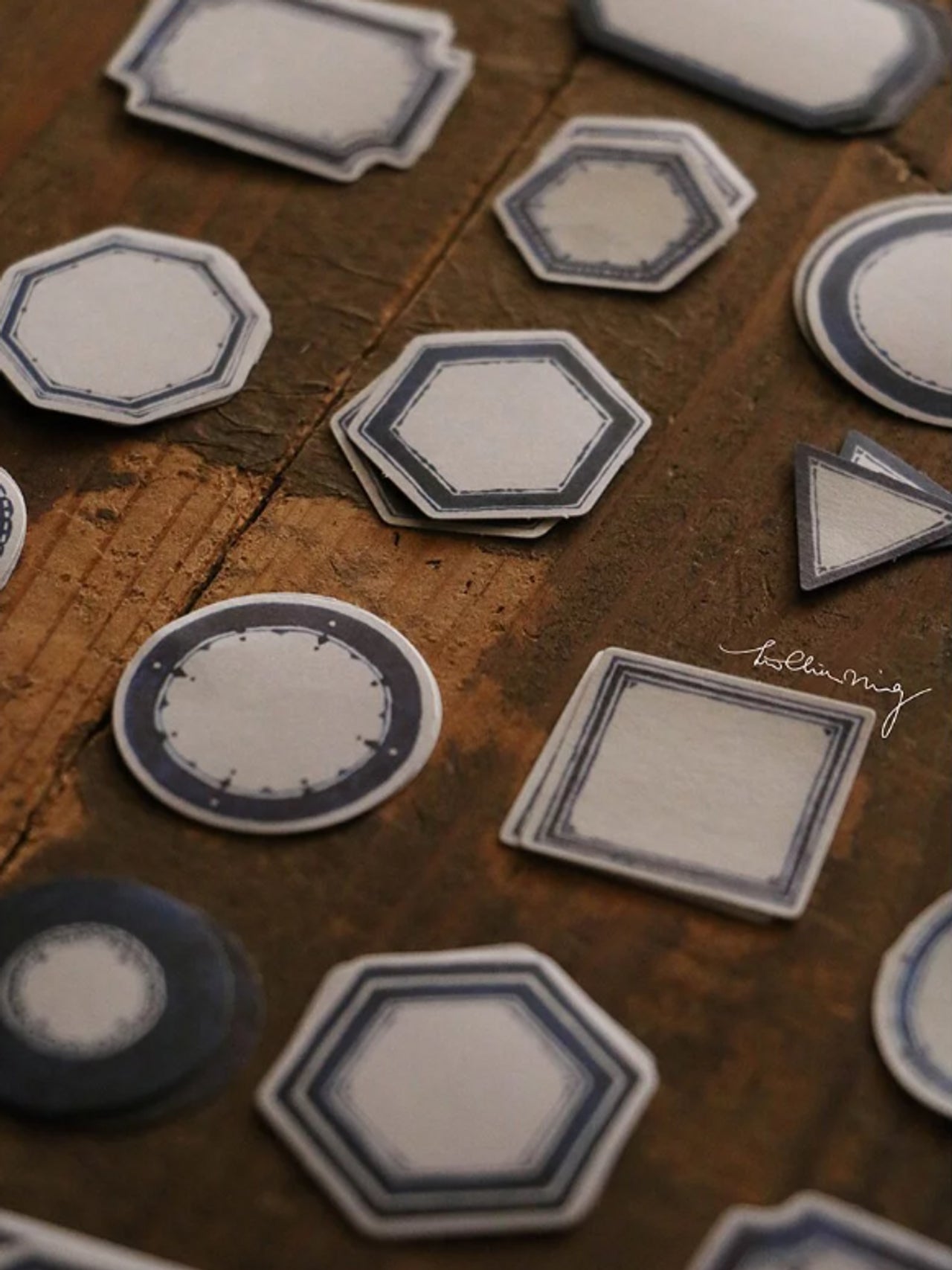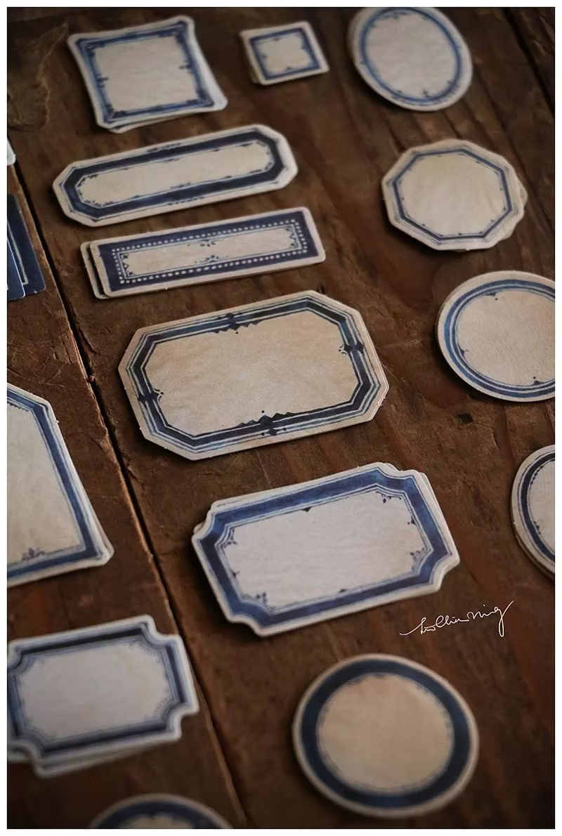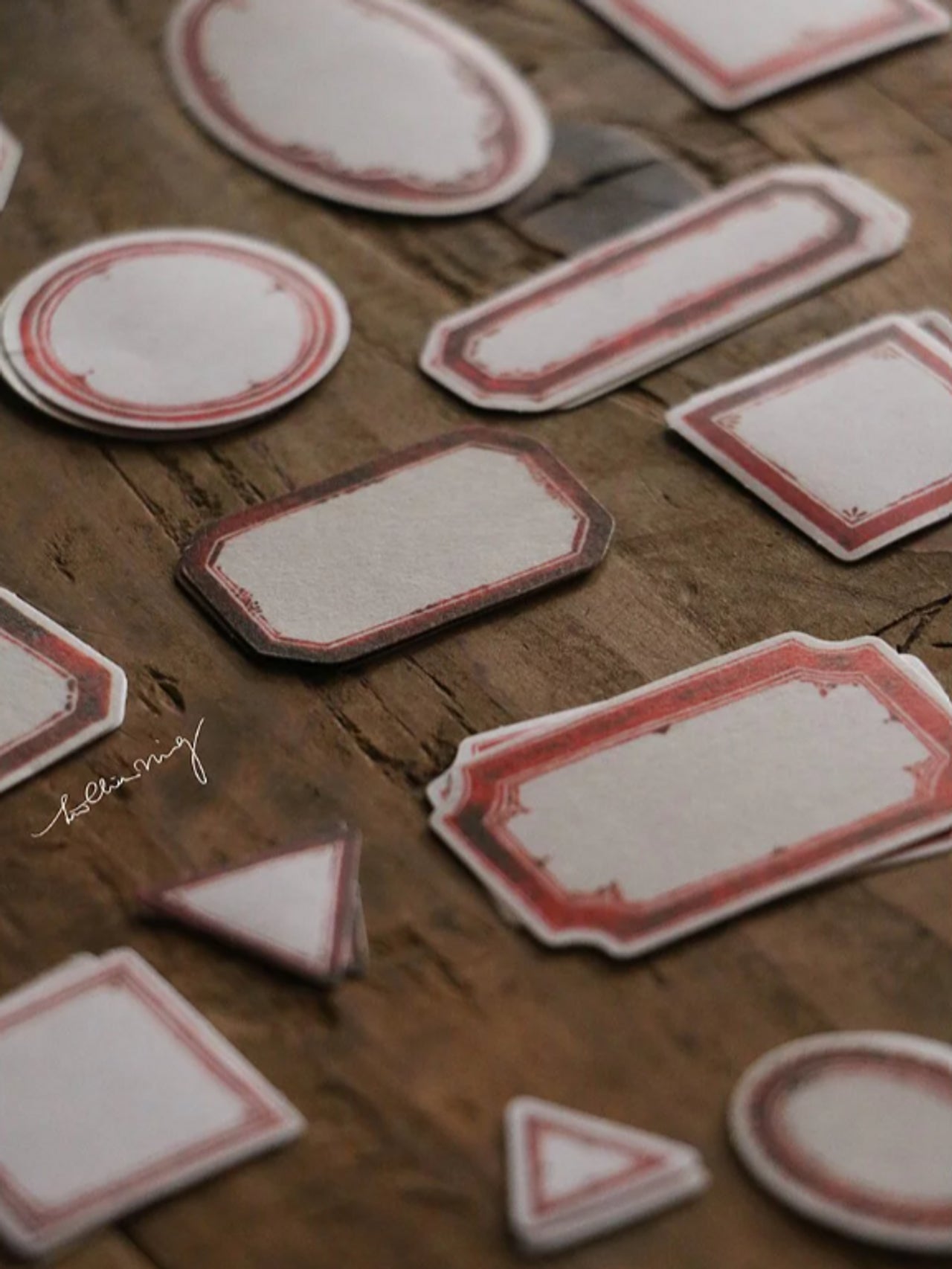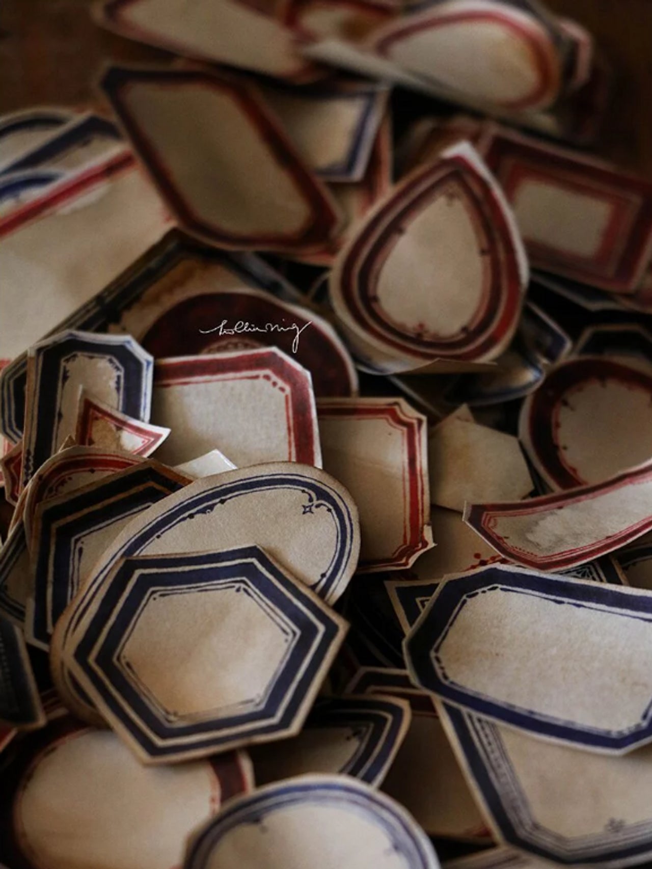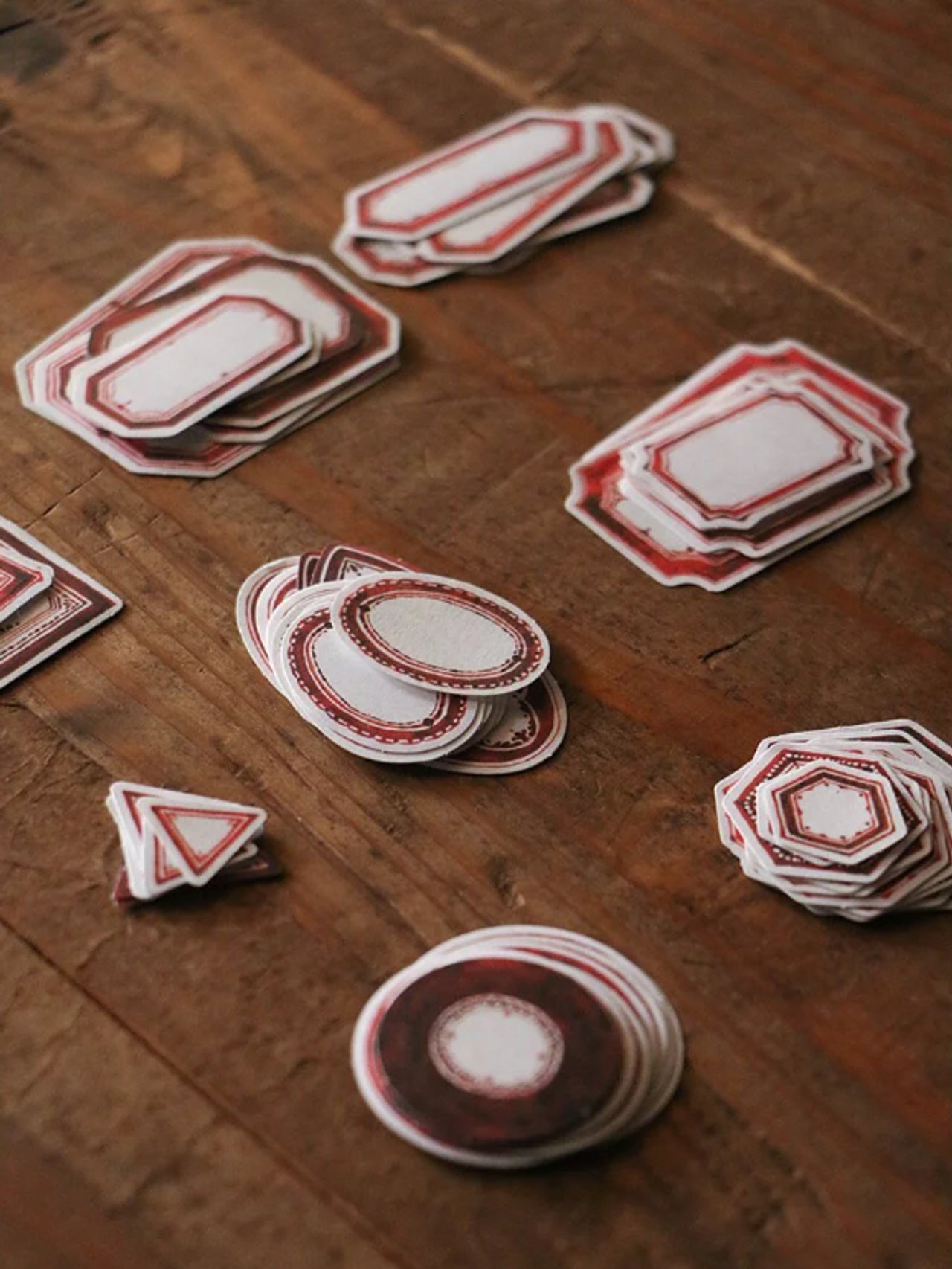 The boxes contains about 148 labels, printed on two types of textured paper.