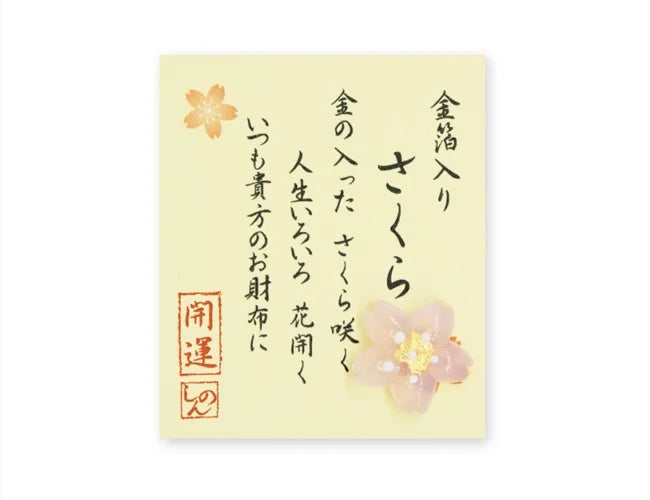 It also contains gold leaf, which is said to bring good fortune. It comes in a little clear bag with mounting paper. You can carry it in your wallet, pen case, pouch, etc.