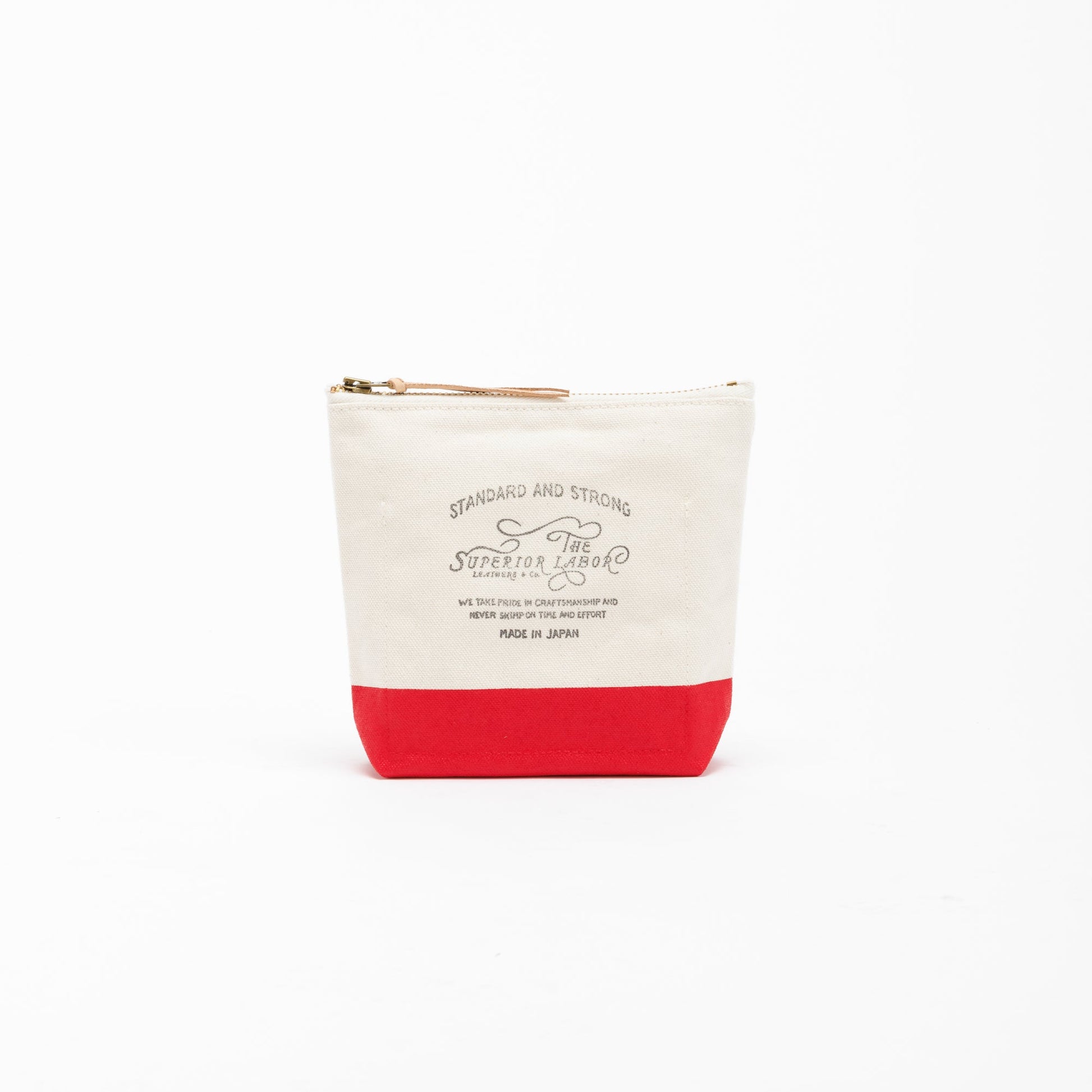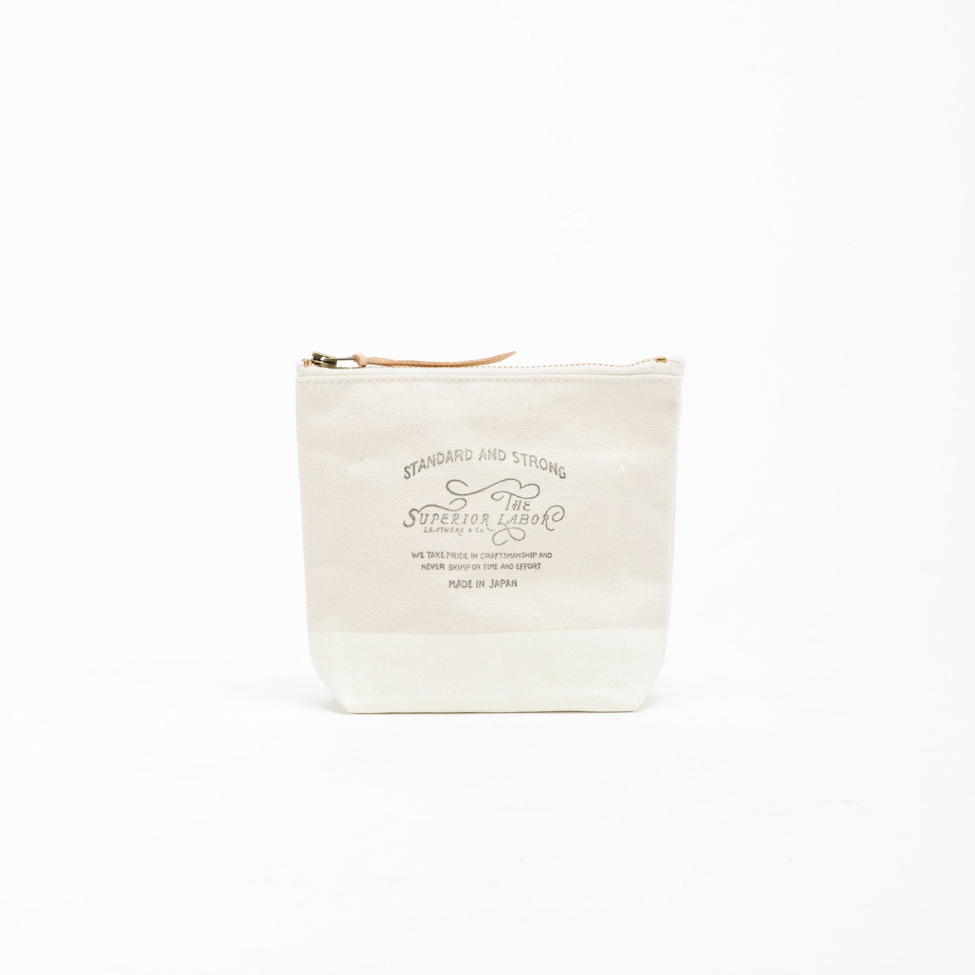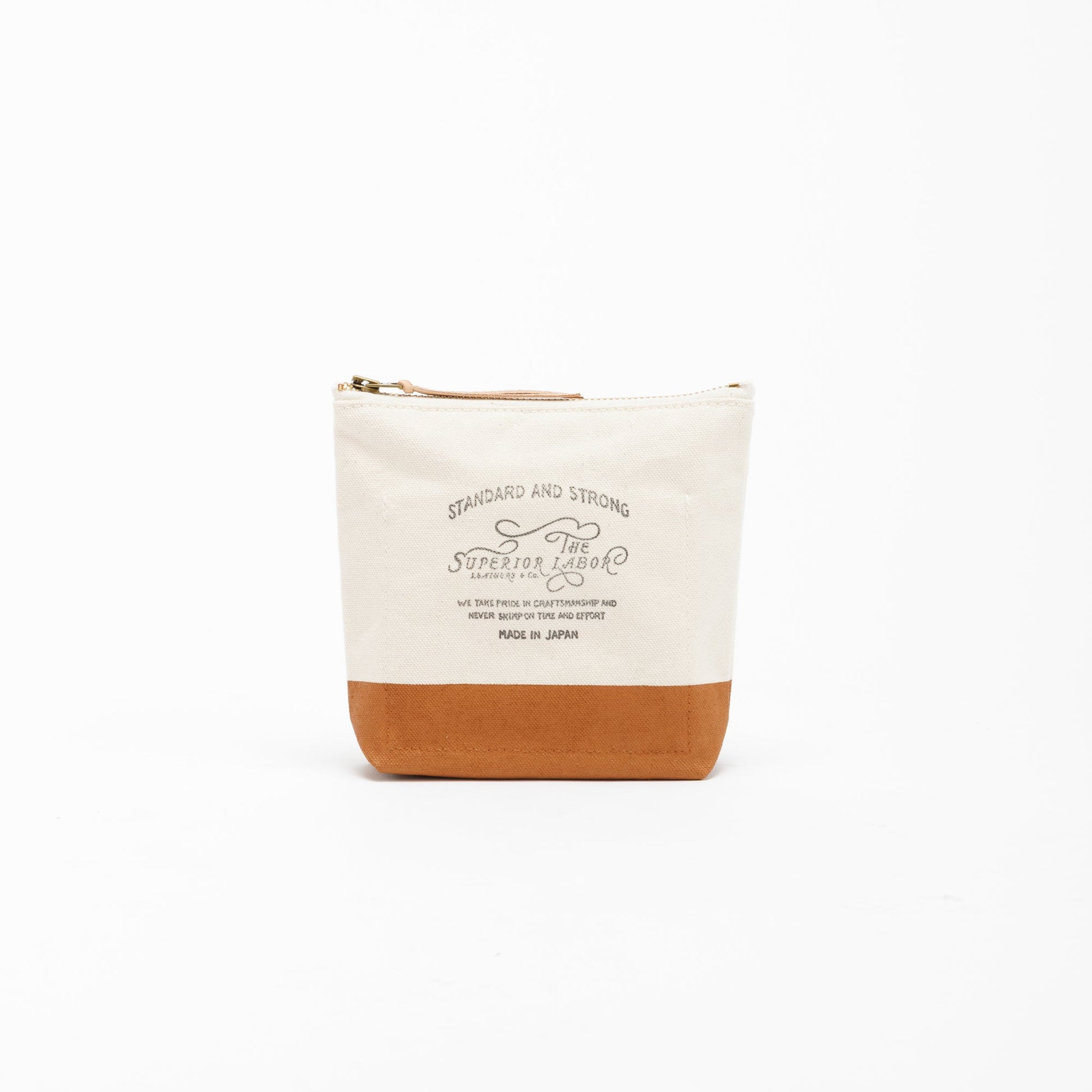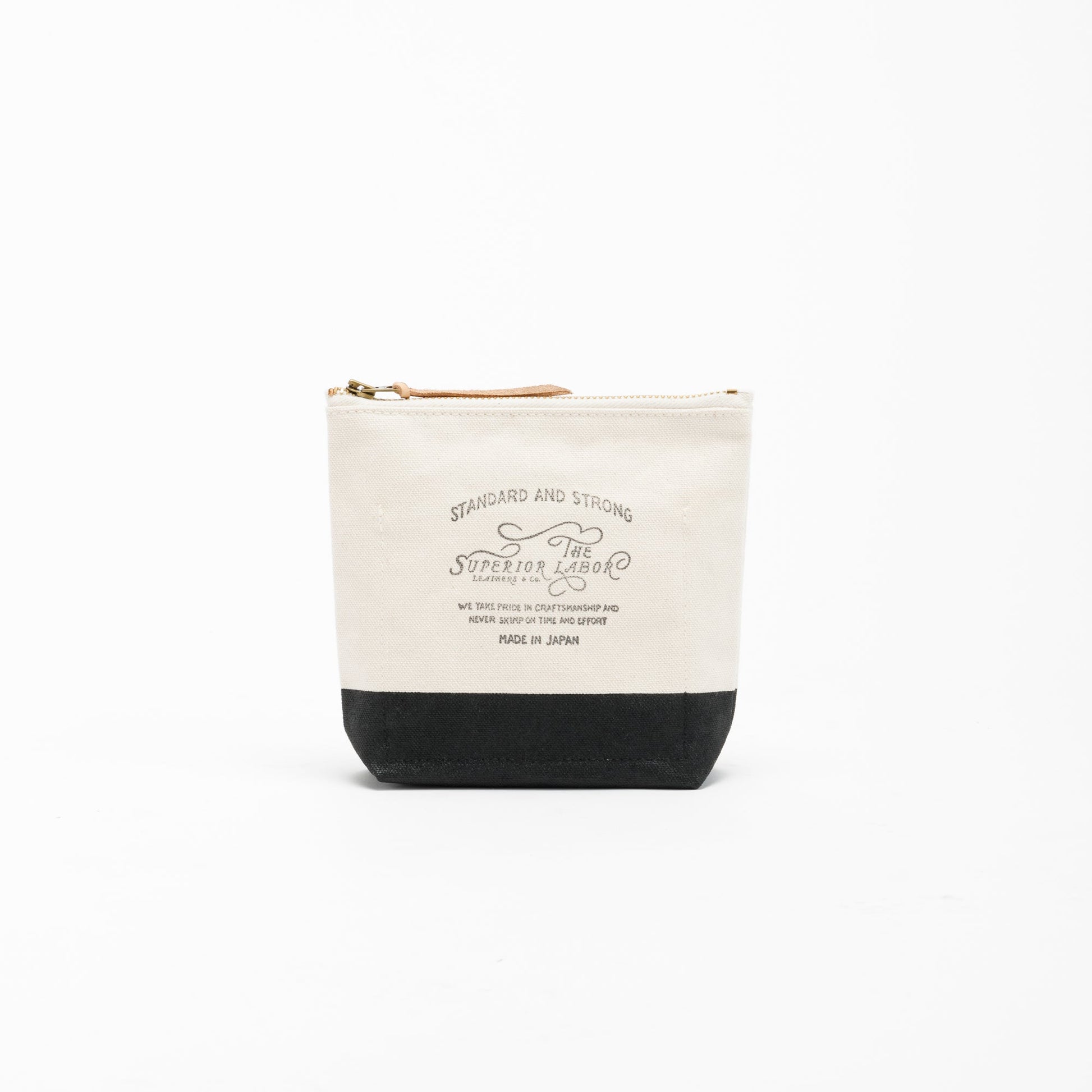 Material: cotton canvas, brass zipper, Japanese cow leather tie