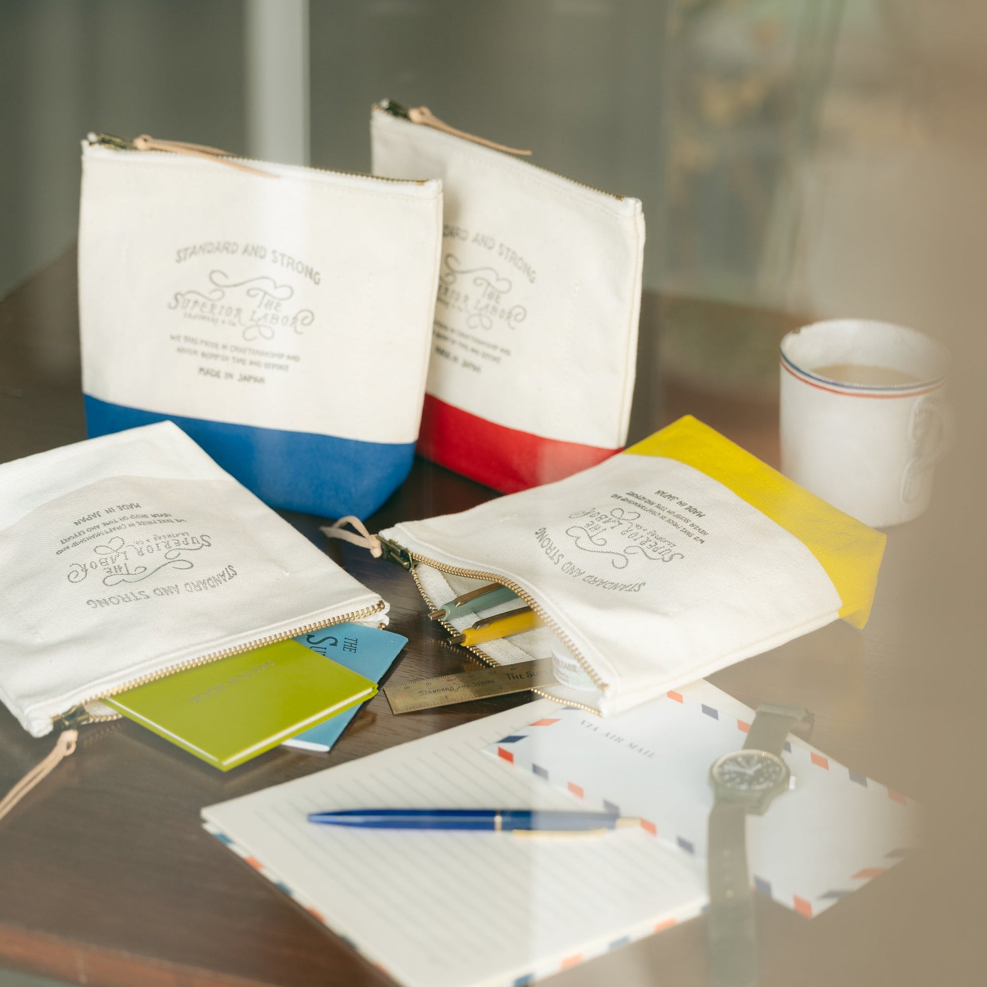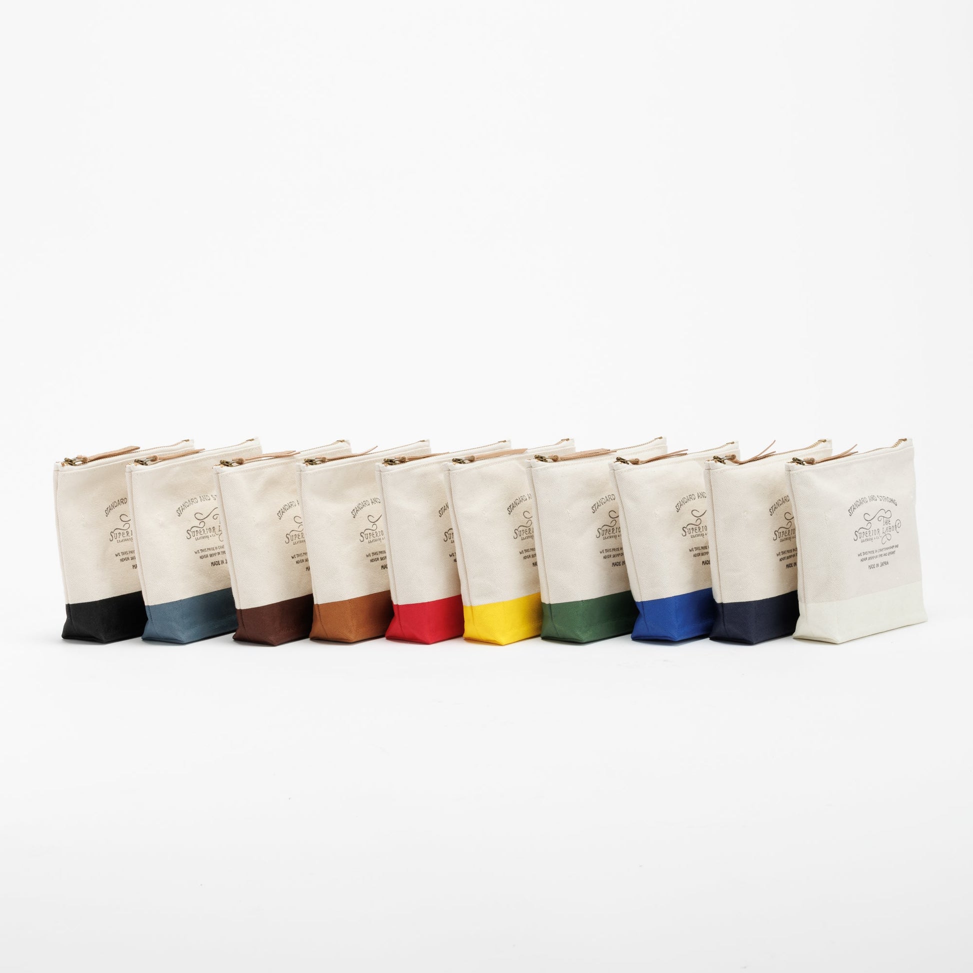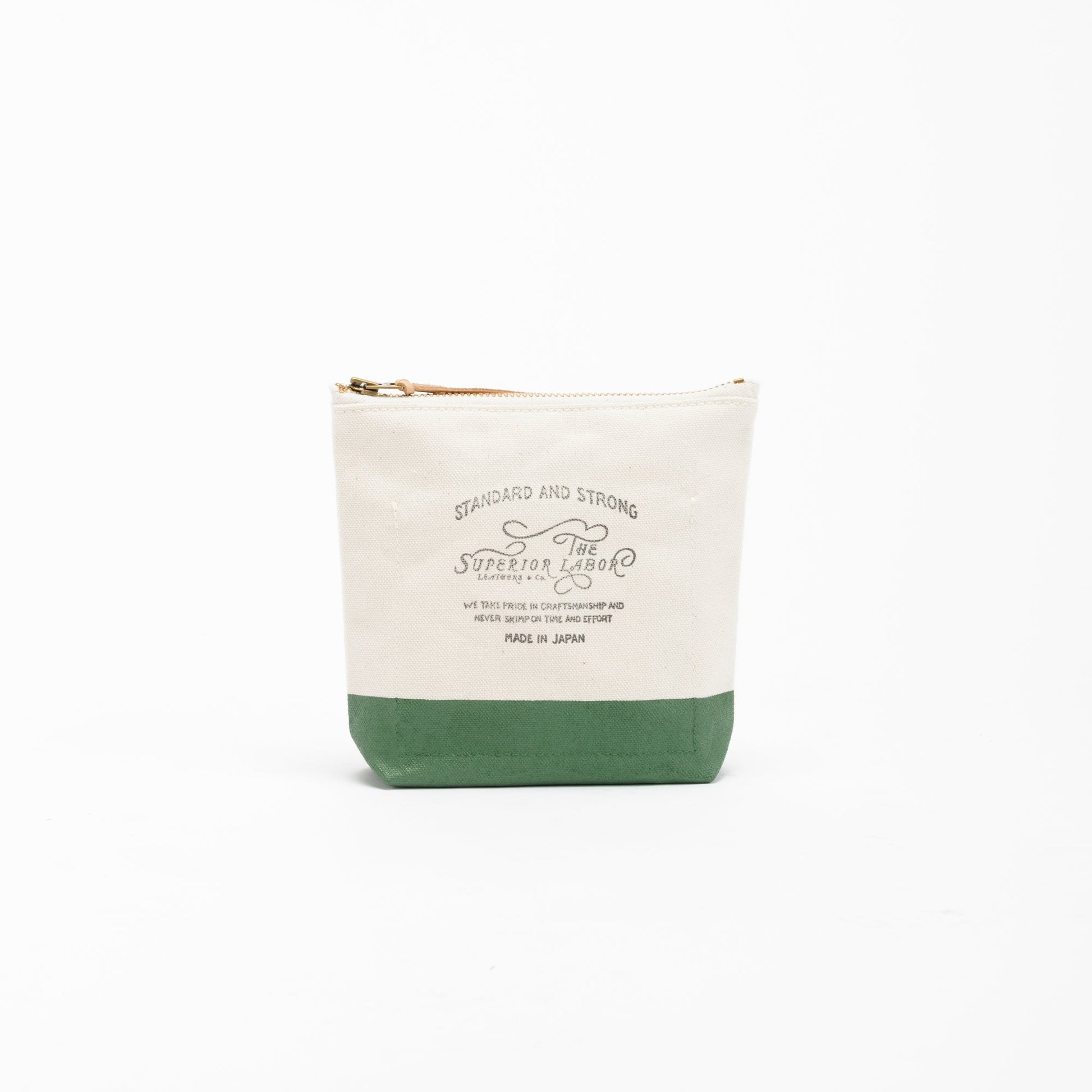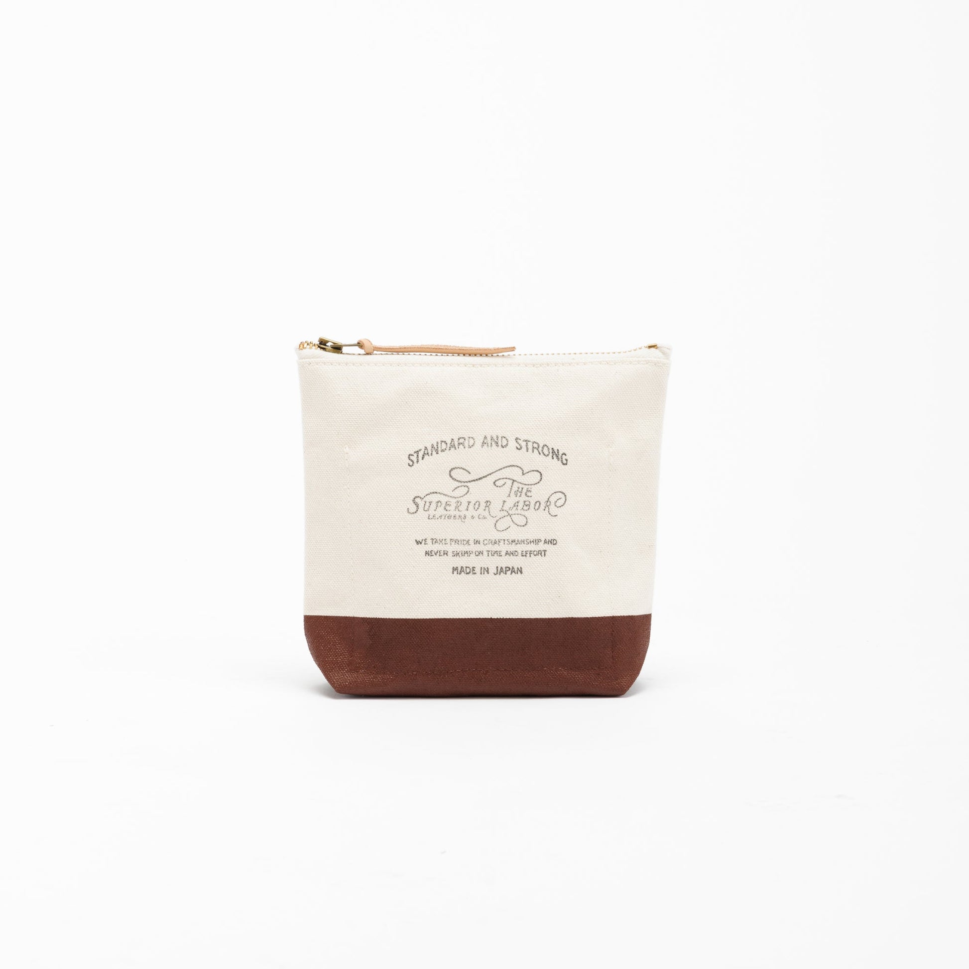 Material: cotton canvas, brass zipper, Japanese cow leather tie