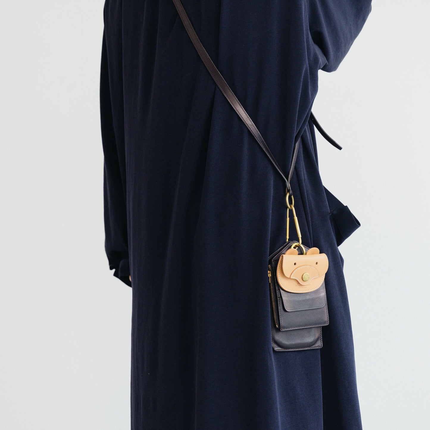 It is pit-tanned with vegetable tannins, like mimosa, richly infused with oil, and finished with dyeing.The result is a supple leather with a soft, moist touch. With continued use, it develops a deepened sheen and character—the kind of leather that grows with you.