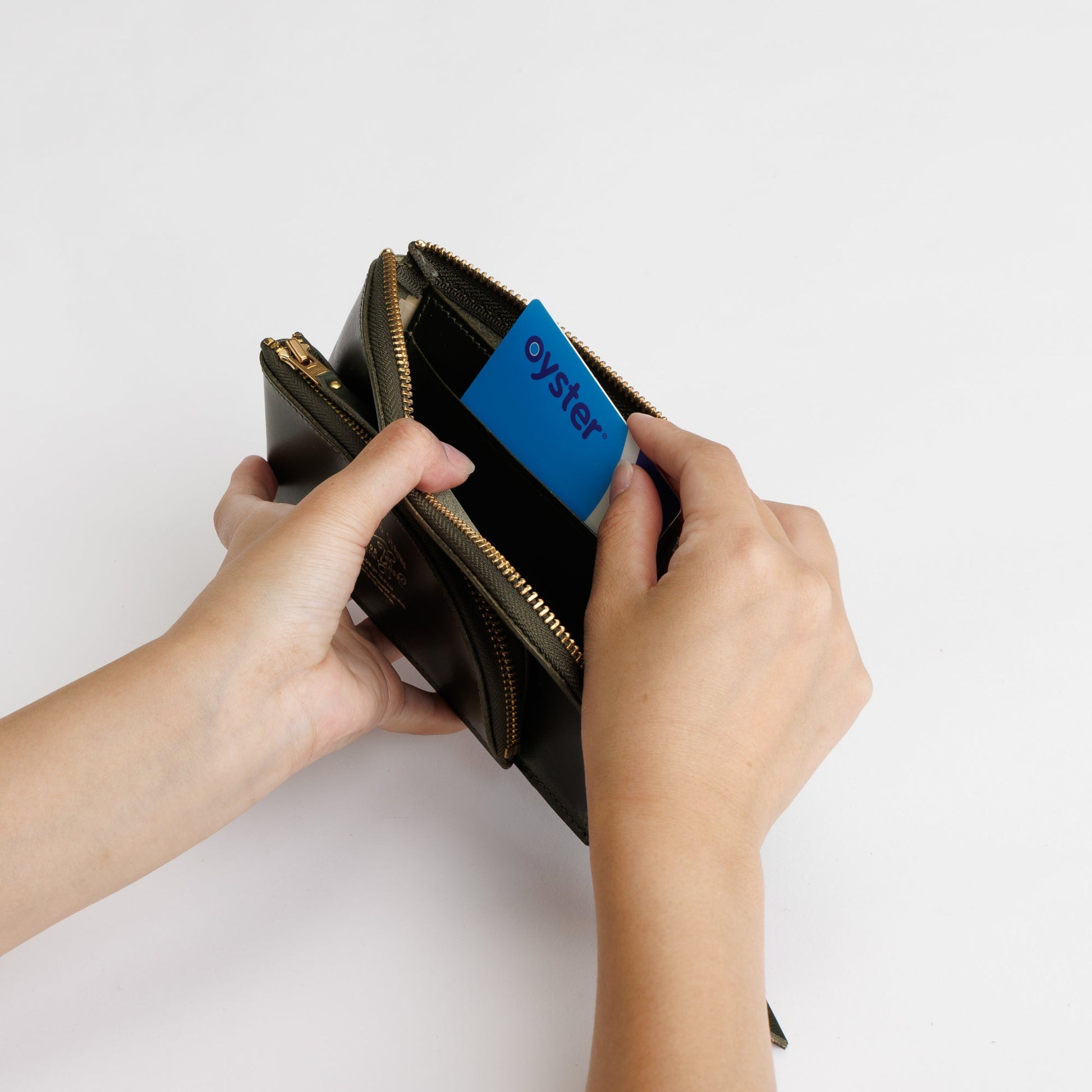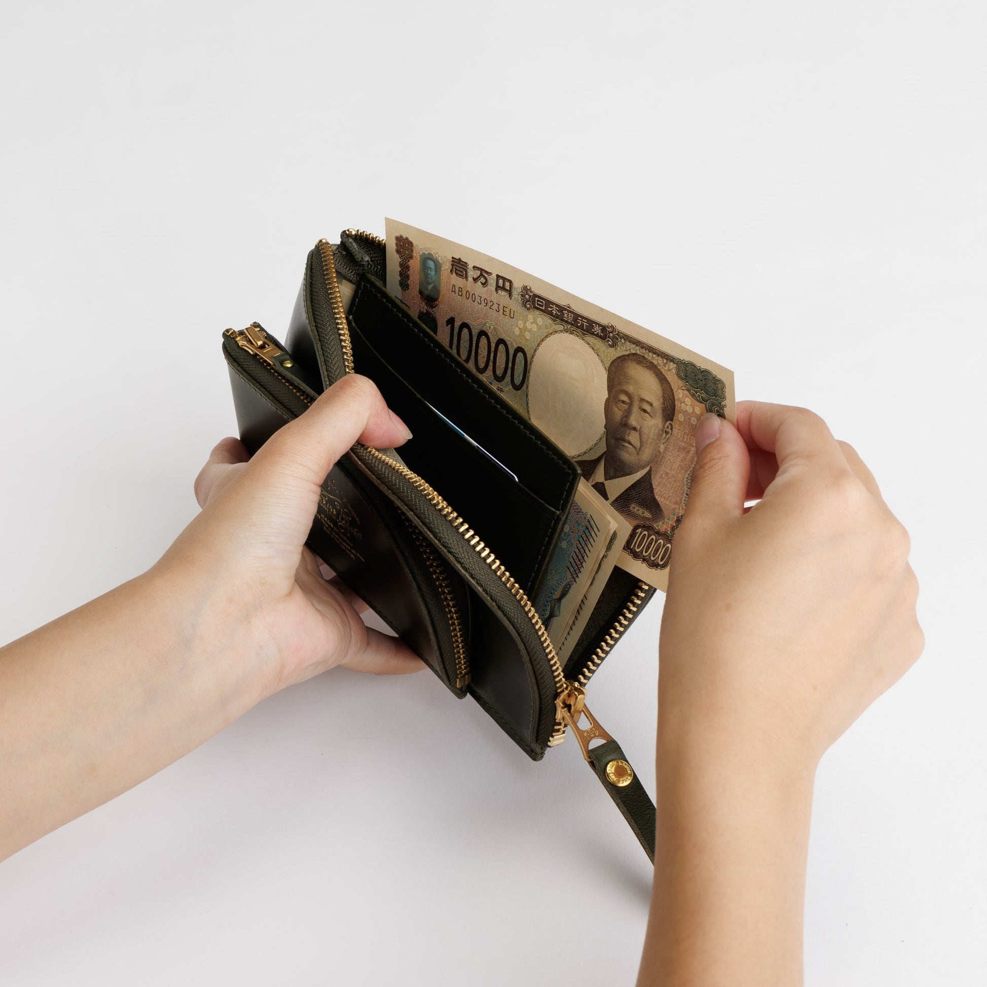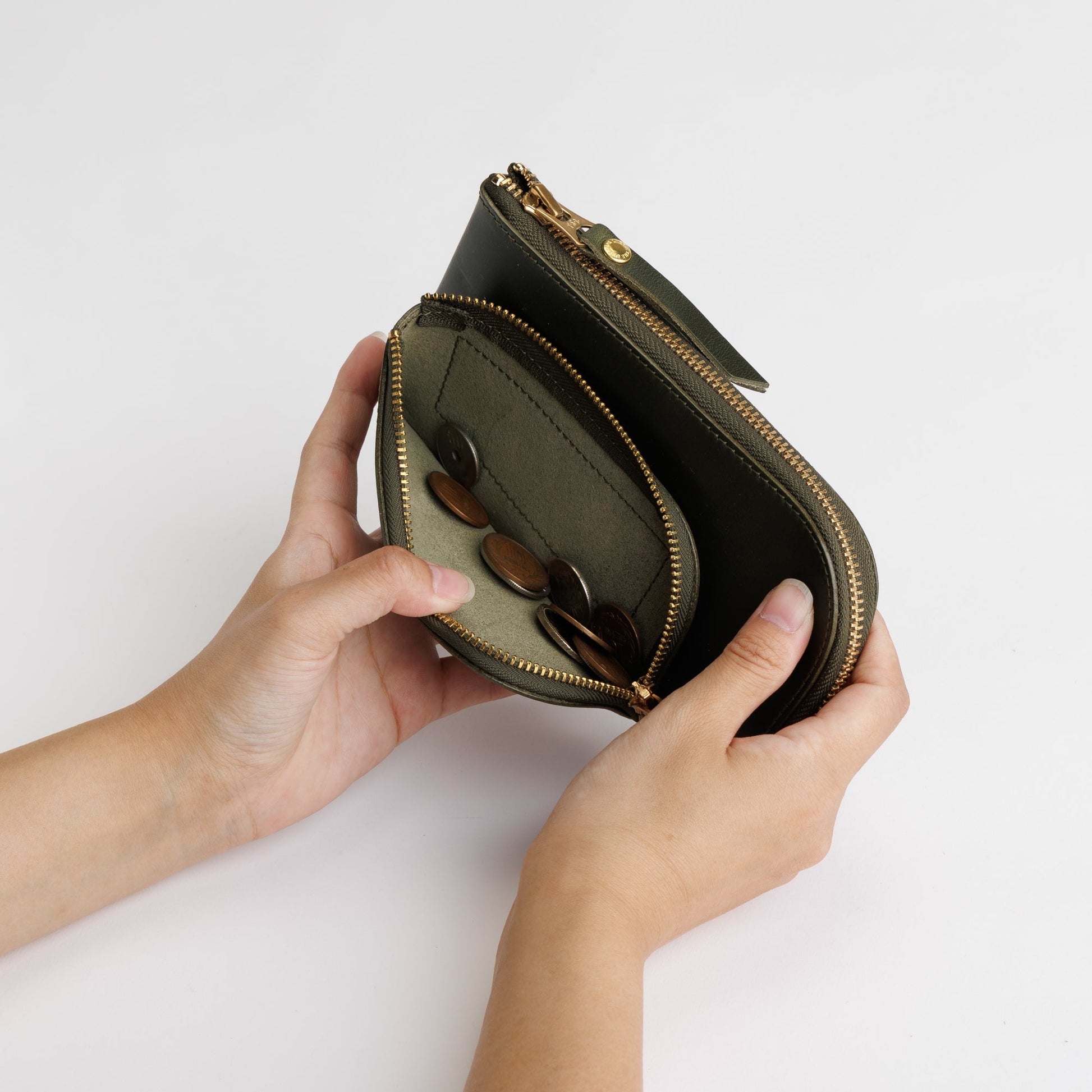 A charming L-zip wallet where a small wallet and a larger one come together like a parent and child.