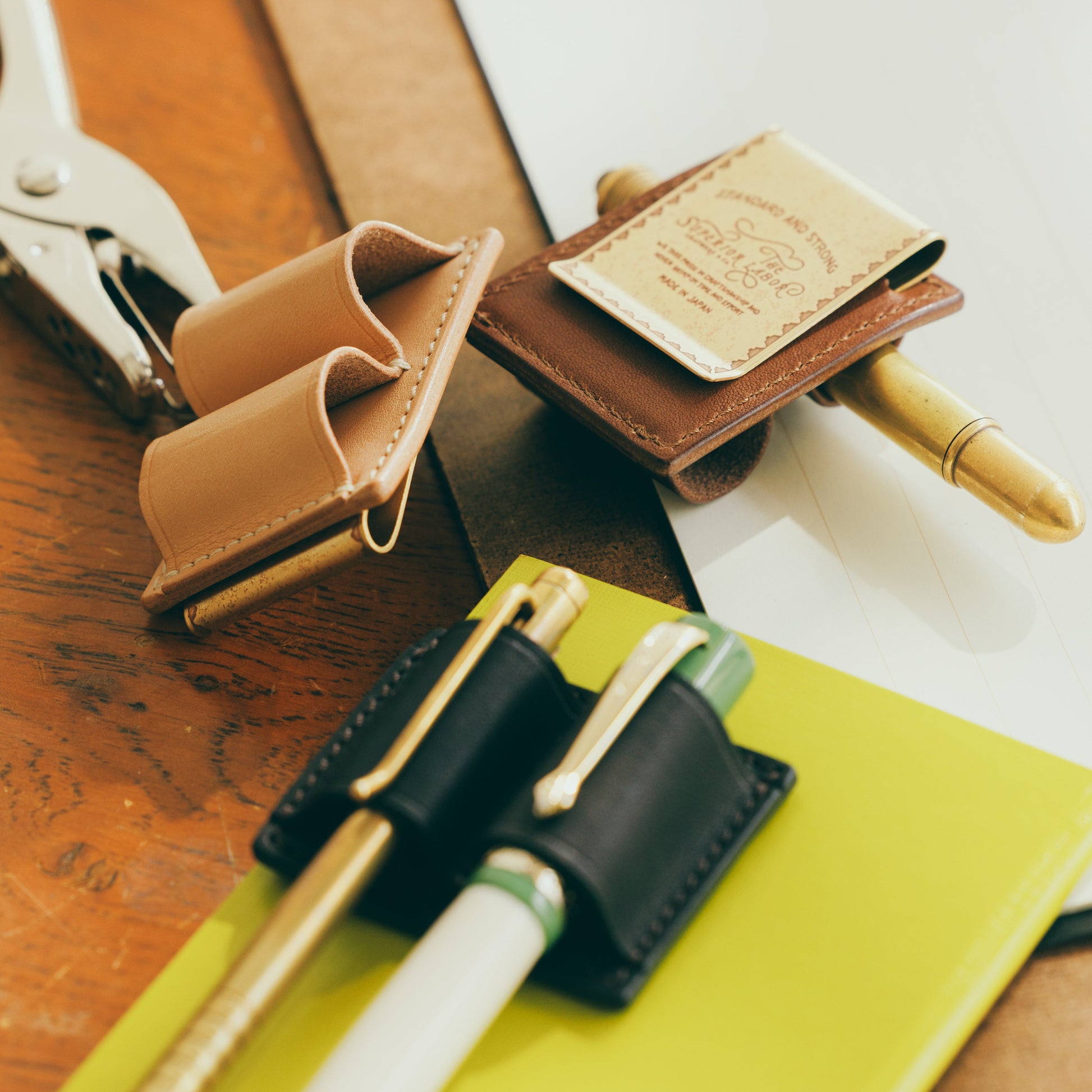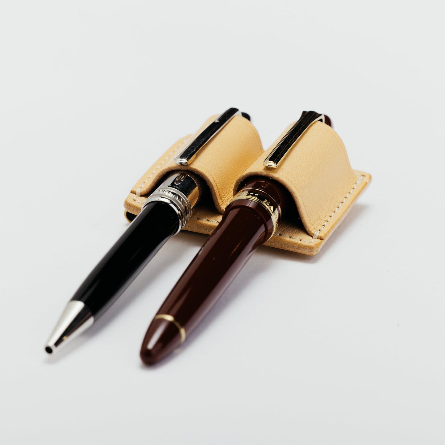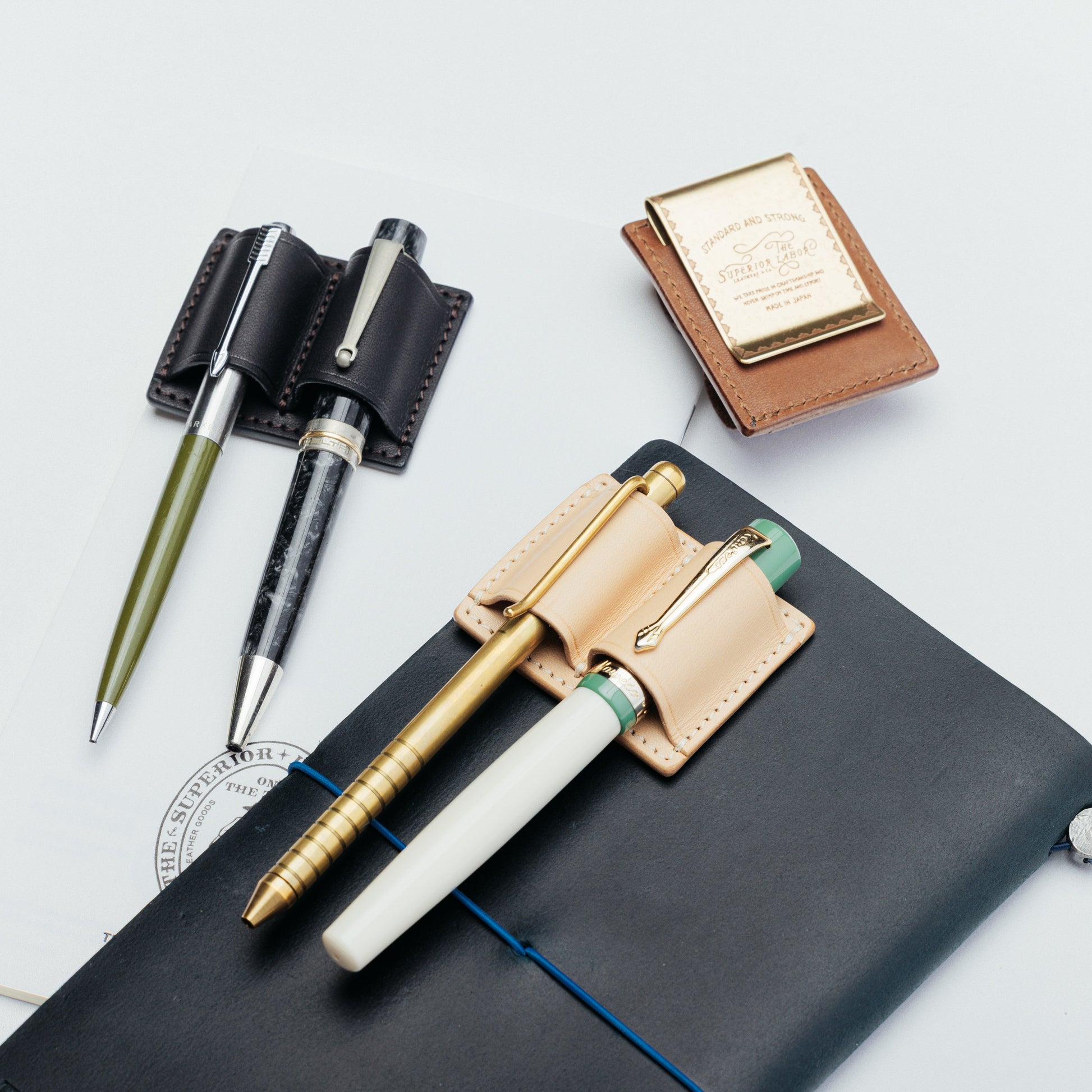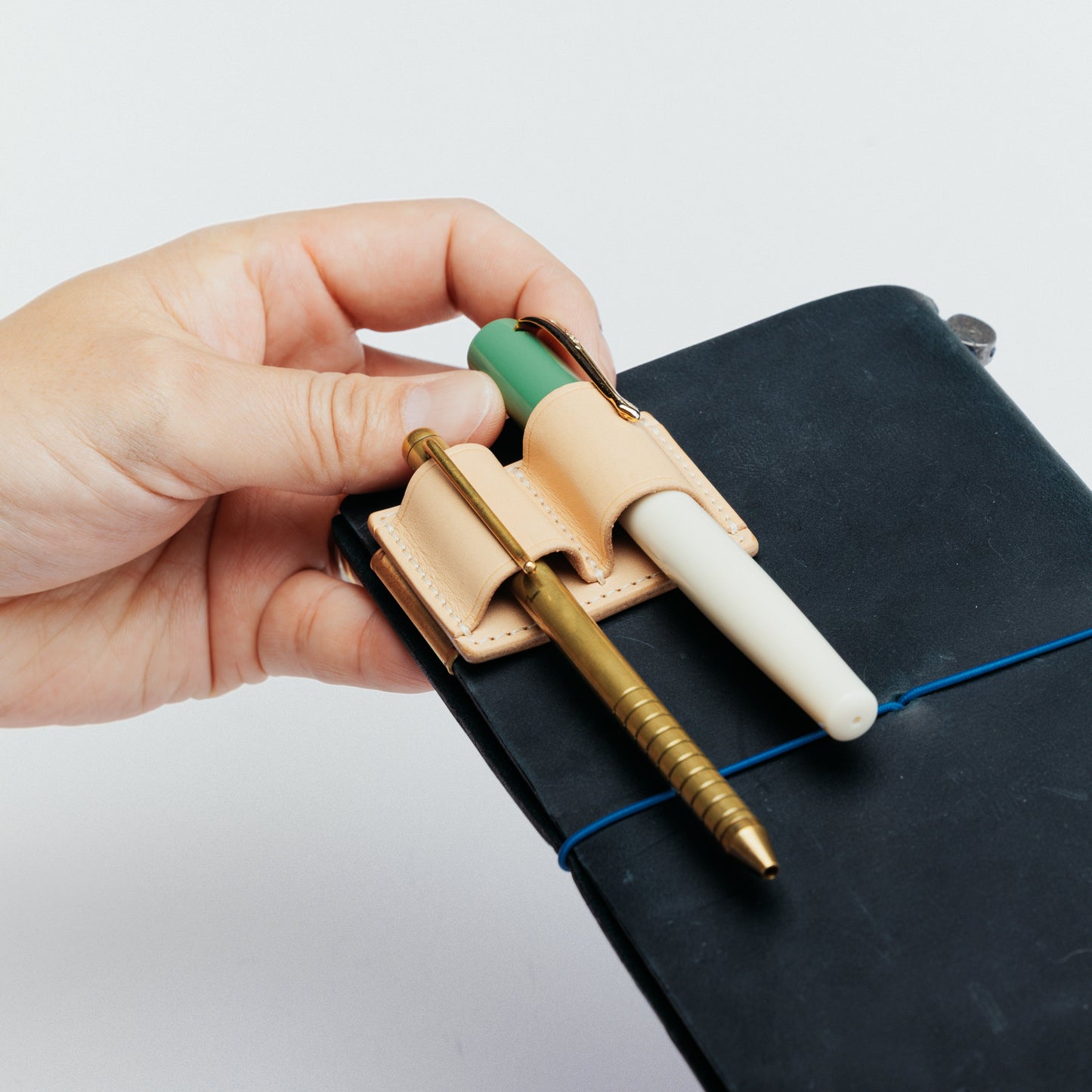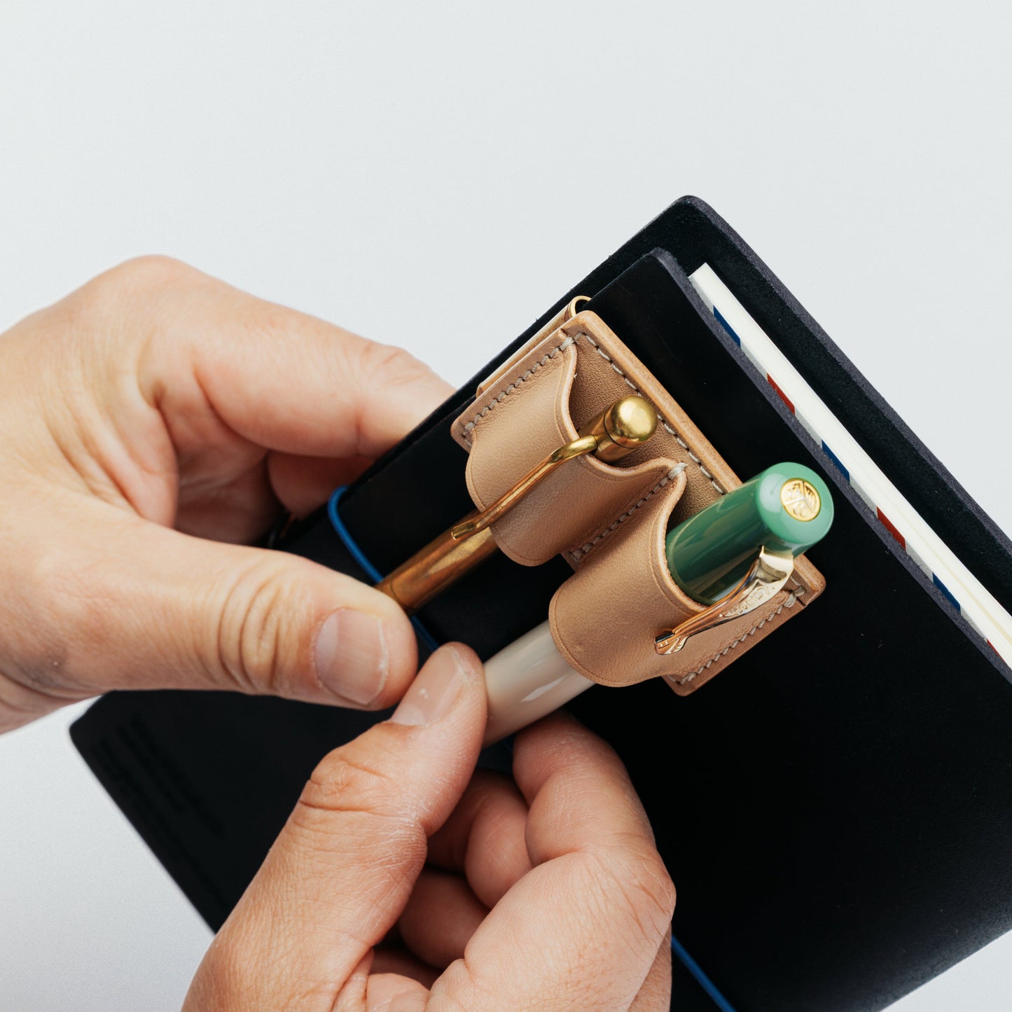 In this version, one of the two pen loops is slightly larger, allowing it a accommodate a thicker pen alongside a standard-sized one.