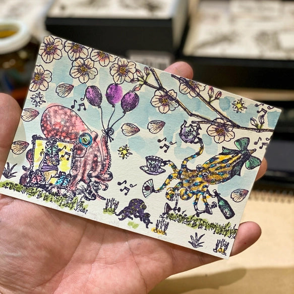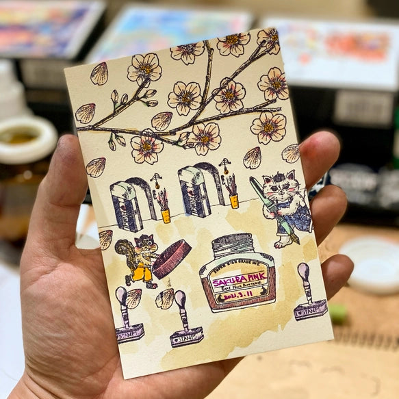 Each order comes with an exclusive Alisa & Akamegane sticker, and an original card made by Wanderlust using the sakura stamp set. Keep it on your desk or journal on the go with this precious stamp set.